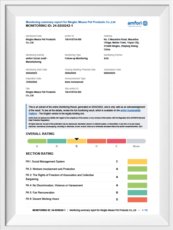 ในฐานะองค์กรขนาดใหญ่ที่เน้นผลิตภัณฑ์สัตว์เลี้ยง Ningbo Meace Pet Products Co., Ltd. มีเวิร์กช็อปการฉีดขึ้นรูปและแม่พิมพ์ที่เป็นอิสระ ทำให้เราสามารถทำซ้ำการออกแบบได้อย่างรวดเร็ว เครื่องมือดูแลสัตว์เลี้ยง ขึ้นอยู่กับผลตอบรับของตลาด เรารู้ว่าห่วงโซ่อุปทานที่มีประสิทธิภาพและการควบคุมคุณภาพอย่างเข้มงวดเป็นรากฐานสำคัญของการได้รับความไว้วางใจในการค้าระหว่างประเทศ