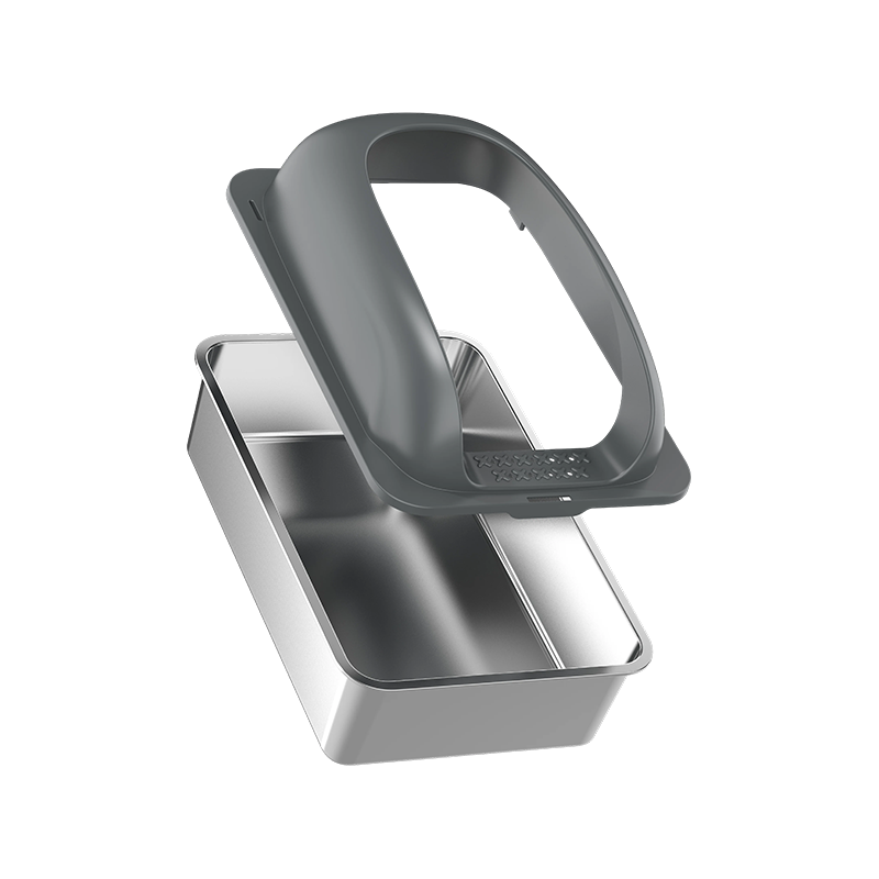 กระบะทรายแบ่งออกเป็นสองส่วนพร้อมข้อต่อแบบ snap-fit ช่วยให้การประกอบทำได้ง่ายและรวดเร็ว